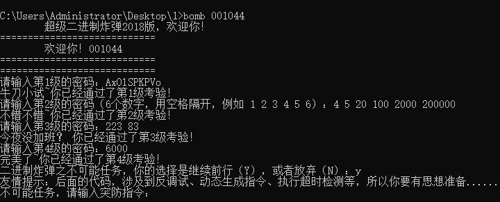 在前四关都完成后,程序会询问是否要进行第五关也就是其所谓的不可能任务。