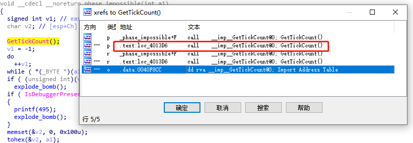 ida 伪代码中点一下开头的 GetTickCount( ),然后按 x 查看交叉引用