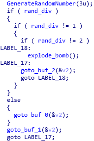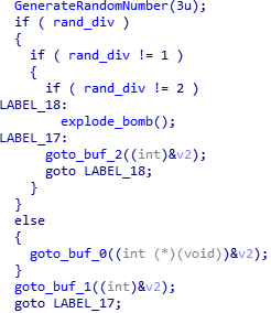生成 0 ~ 2 的一个数,然后分别去向 goto_buf_0,goto_buf_1,goto_buf_2