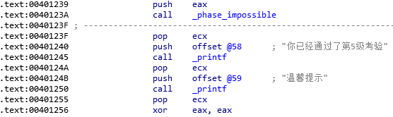 来看靠上的两个地址,第一个是 phase_impossible + F,也就是 phase_impossible 在开头调用的这个