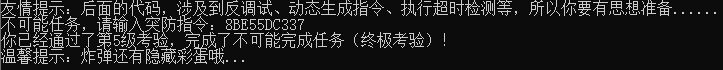 这样看似完美了,在输出完第五关通关后,确实输出了彩蛋,但是输出完彩蛋,程序无法正常返回