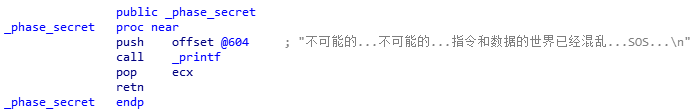 翻一翻 ida 的函数左侧的函数名称窗口,可以找到一个名为 phase_secret 的函数,它的作用就是输出一个彩蛋字符串