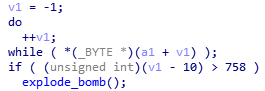 接下来的一个 do-while 循环不难看出是用来计算第五关输入字符串(a1)长度的,而且长度不能大于 768