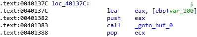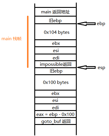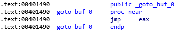 而 goto_buf_0 就一句 jmp eax,所以在跳之前,栈是这样的: