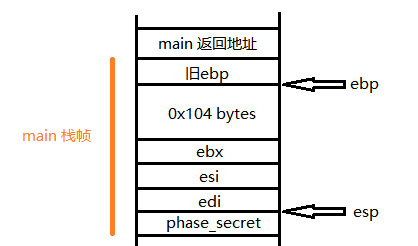 原因是当 phase_secret 执行到 retn 时,esp 正指向 main 保存的 edi