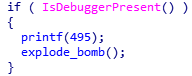 然后判断是否存在调试器,存在就直接引爆,看来这就是反调试的地方了,怎么绕过后面再说